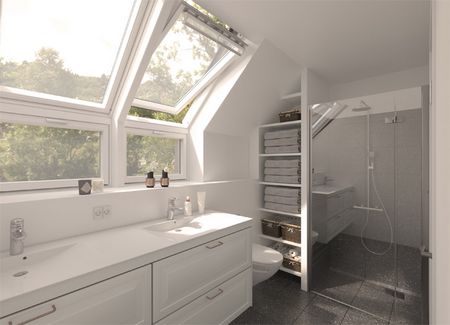 Die Dachfenster und großzügigen Lichtlösungen von VELUX sorgen für lichtdurchflutete Räume und ein offenes Wohnerlebnis. Je nach Einbausituation lassen sich bodentiefe Fenster oder nebeneinanderliegende Lichtbänder mit fast durchgehenden Glasflächen bis hin zur Open-Air-Lösung mit Dachaustritt oder Dachbalkon realisieren. Zur Übersicht der VELUX-Dachfensterarten